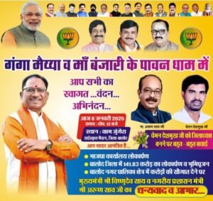 सजग प्रहरी/09 जनवरी 2025 बुधवार दिनांक 08 जनवरी 2025 को प्रदेश के मुख्यमंत्री बिष्णुदेव साय का बालोद जिले के ग्राम...