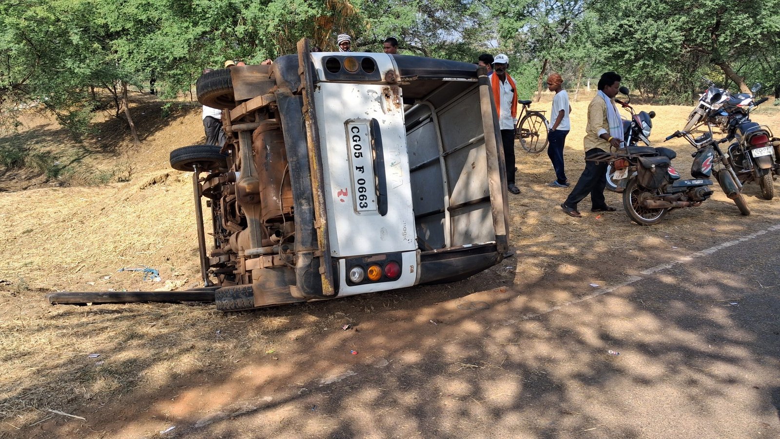 नशे में चूर वाहन चालक की लापरवाही के चलते स्कूली बच्चों से भरा टाटा मैजिक दुर्घटना ग्रस्त।