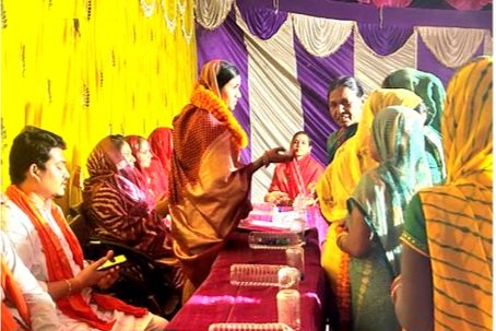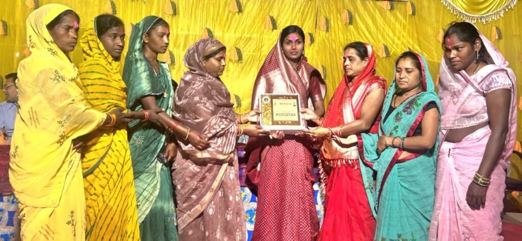 ग्राम संजारी बालोद में होली मिलन एवं सम्मान समारोह में शामिल हुई तारणी चंद्राकर।