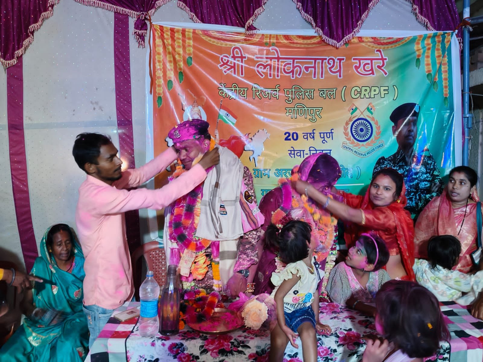 ग्राम अरजपुरी के बेटे लोकनाथ खरे CRPF से रिटायर होकर गांव पहुंचे।