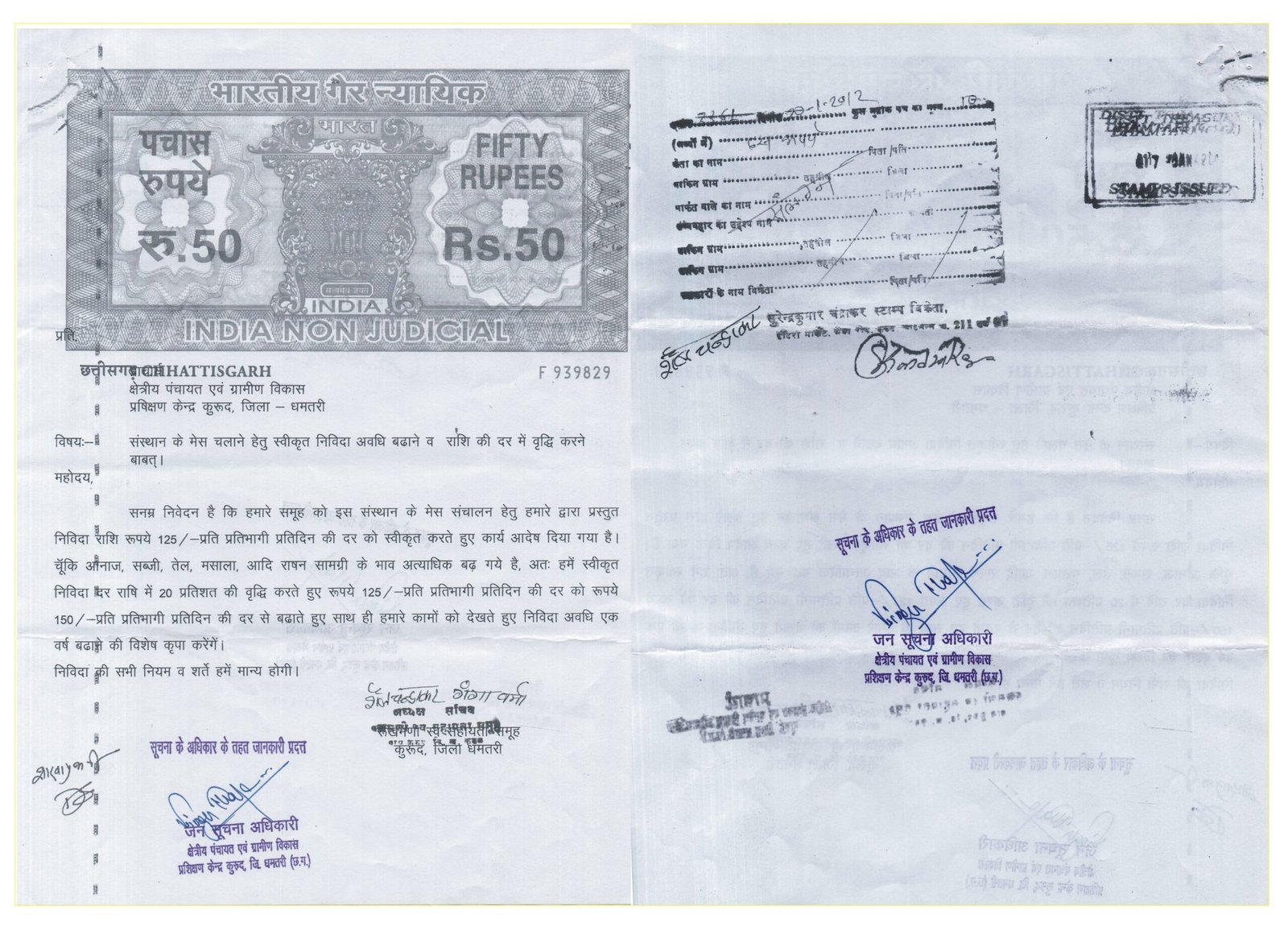 अवगत हो कि क्षेत्रीय पंचायत प्रशिक्षण केन्द्र कुरूद में भोजन प्रदाय किये जाने के संबंध में मंगाये गये टेण्डर के संबंध में जानकारी चाही गई थी। जिसमें इस विभाग द्वारा निविदा के लिये किसी प्रकार के भंडार क्रय नियम के तहत किसी प्रक्रिया का पालन नहीं किया गया है। विभाग से चाही गई जानकारी भी आधी अधूरी जानकारी उपलब्ध कराई गई है। जितने भी दस्तावेज विभाग द्वारा आरटीआई के तहत प्रदान किया गया है, वे सभी दस्तावेज प्रथम अपीली अधिकारी भी शायद समझ नहीं पाए कि उनके नीचे के अधिकारी ने उनके ही समक्ष कुट रचित दस्तावेज उपलब्ध करा दिया।