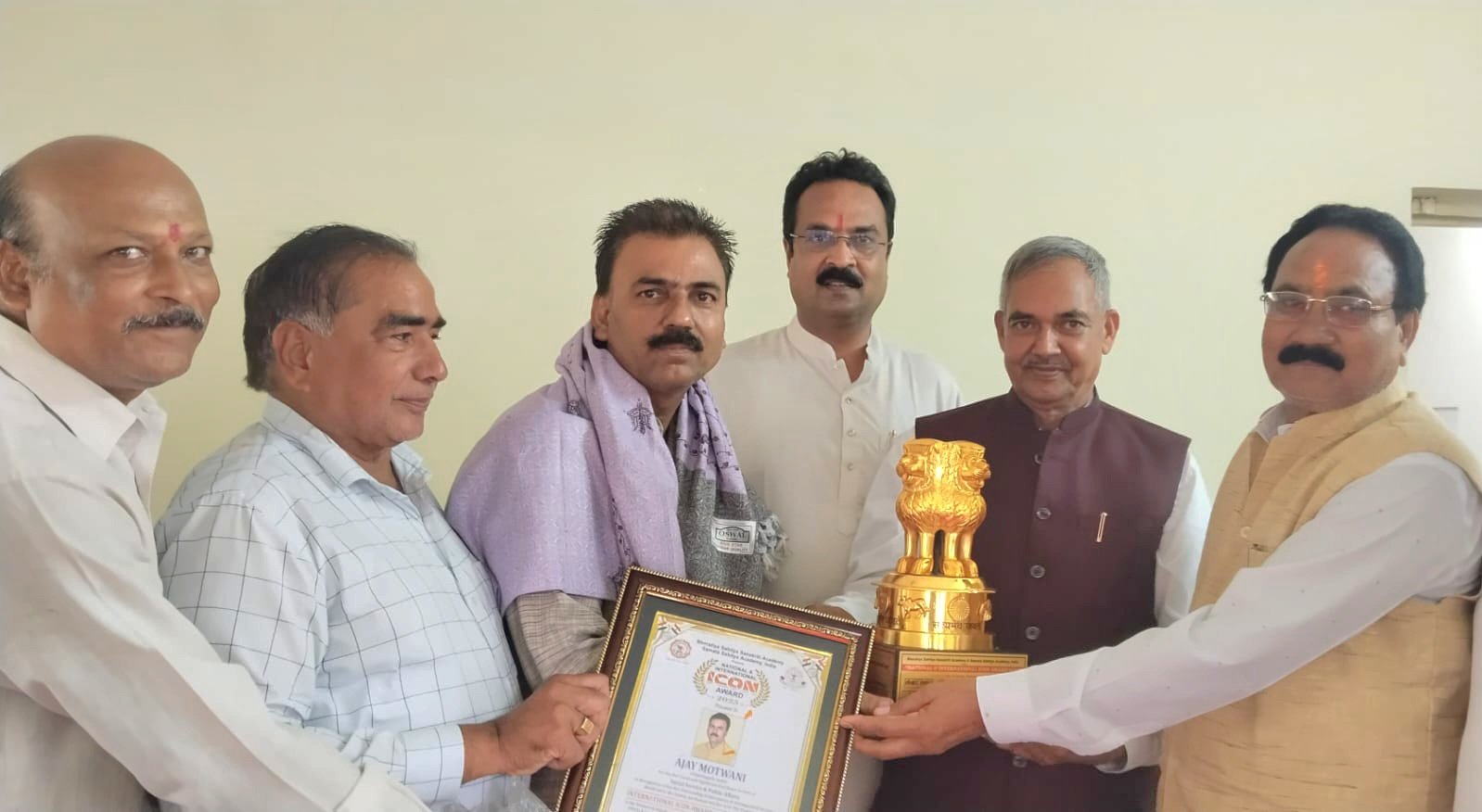 देश प्रदेश की प्रख्यात समाजसेवी संस्था “जन सहयोग” के अध्यक्ष अजय पप्पू मोटवानी को नई दिल्ली की साहित्य संस्कृति अकादमी द्वारा प्रायोजित नेशनल एवं इंटरनेशनल आईकॉन सम्मान में इंटरनेशनल आइकॉन हेतु सम्मानित करने का निर्णय लिया गया था। तदानुसार उन्हें रेस्ट हाउस में एक सादगी पूर्ण समारोह में प्रदेश के योग आयोग के अध्यक्ष रूप नारायण सिन्हा के  कर कमलों से इंटरनेशनल आइकॉन गोल्ड मेडल सम्मान, भारत के राजकीय चिन्ह की सुंदर अनुकृति स्मारक के रूप में प्रशस्ति पत्र, सहित प्रदान की गई।