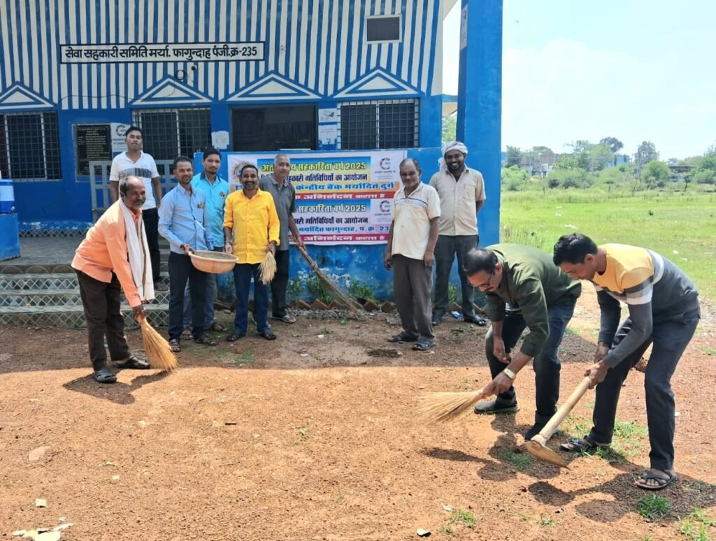 सेवा पखवाड़ा के तहत सेवा सहकारी समिति फागुनदाह ने चलाया स्वच्छता अभियान।