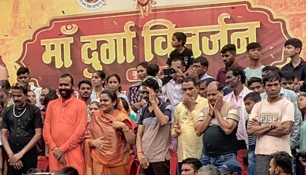भक्तजनों ने मां दुर्गा को नम आंखों से अगले वर्ष पुनः आगमन की मनोकामना के साथ दी बिदाई।