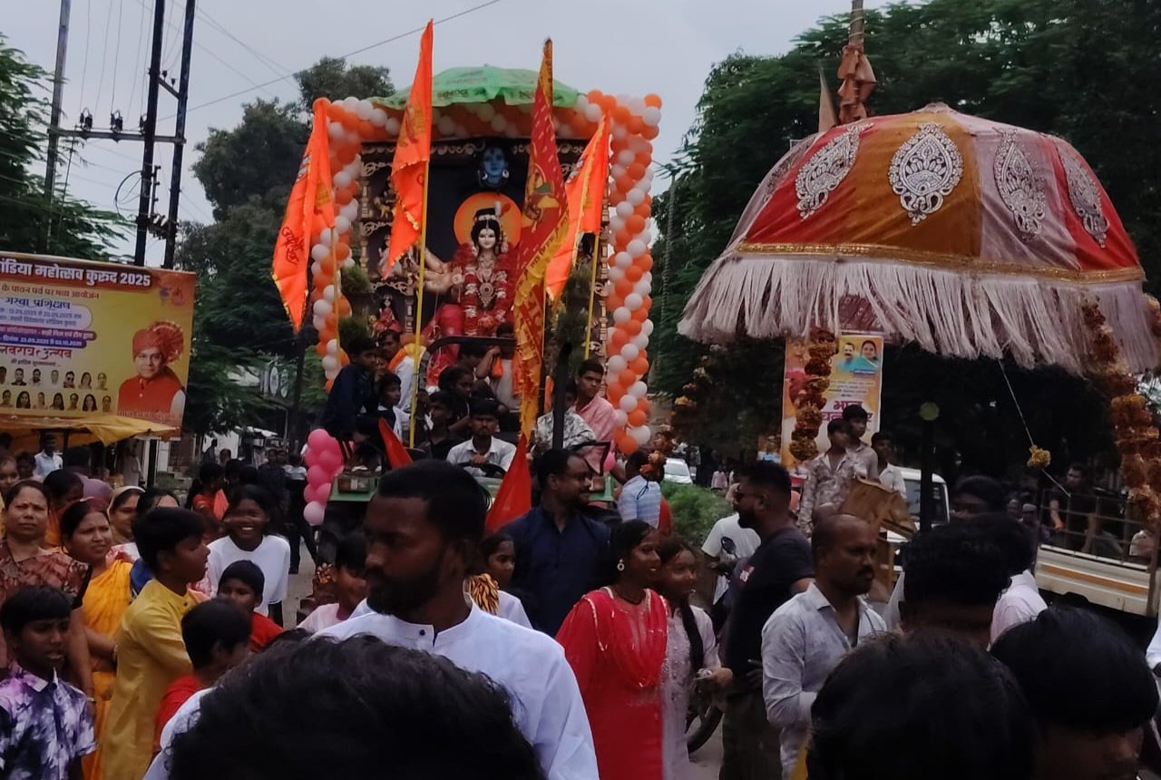 कुरूद नगर में विभिन्न दुर्गा पंडालों बजरंग चौक, थाना चौक, पुरानी मंडी, नया बाजार, पचरीपार और सूर्य नमस्कार चौक, शंकर नगर, सिरसा चौक, सरोजनी चौक, शांति नगर सहित संजय नगर में विराजित मां दुर्गा को भक्तों ने अश्रुपूरित आंखों से अंतिम विदाई दी। इस दौरान भक्तों और श्रद्धालुओं ने माता से सुख-समृद्धि और निरोग रहने की कामना कर रही थी। प्रतिमाओं को शहर के विभिन्न मार्गो सांघा रोड, कारगिल चौक, पुराना बस स्टैंड, मुख्य मार्ग पुराना बाजार, थाना रोड, चंडी मंदिर आदि स्थानों से घुमाया गया। इस दौरान महिला श्रद्धालु जगह-जगह आरती की थाली लेकर खड़ी संख्या में नजर आई जो पारंपरिक रूप से माता की पूजा अर्चना कर उन्हें नम आंखों से विदाई दी।