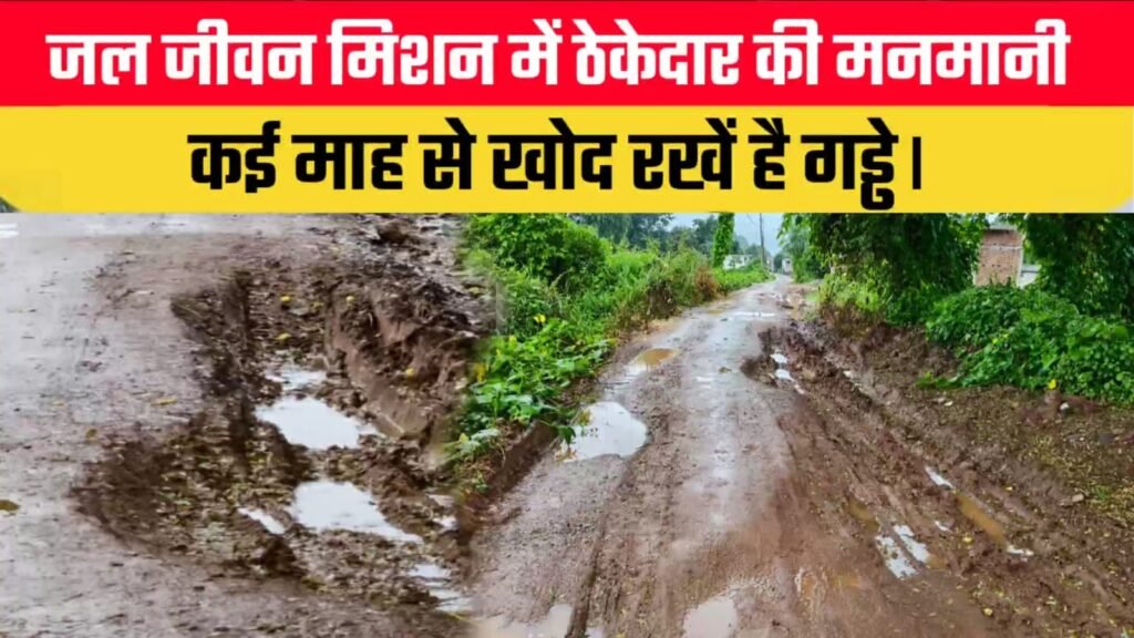 अवगत हो कि जल जीवन मिशन के तहत हर-घर पानी पहुंचाने की योजना के तहत नियम विपरीत सड़क के बीचो बीच पाइप बिछाने के नाम पर गहरे गड्ढे खोद दिए गए हैं, जिसे महीनों से खुला छोड़ दिया गया है। जो कि अभी तक वैसे ही बने हुए हैं, बारिश के चलते इन गड्डों में पानी जमा हो जा रहा हैं।