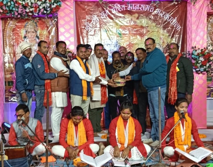 मानस गान प्रतियोगिता मरका टोला (फतेचंद) में अजय पप्पू मोटवानी को विशिष्ट अतिथि का सम्मान।