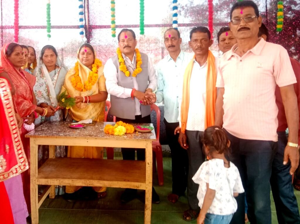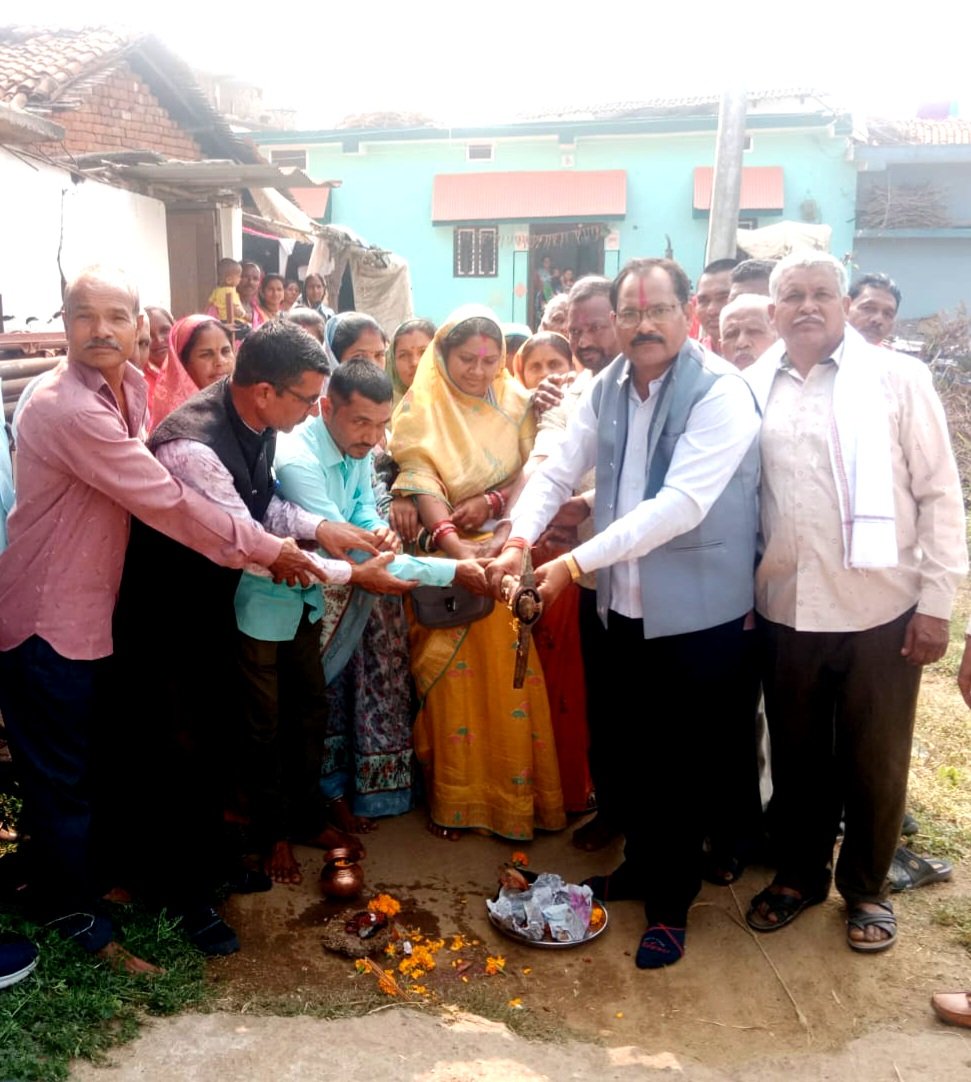 जनपद निधि के सीमेंटीकरण कार्य का लक्ष्मी अशोक साहू ने किया भूमिपूजन।