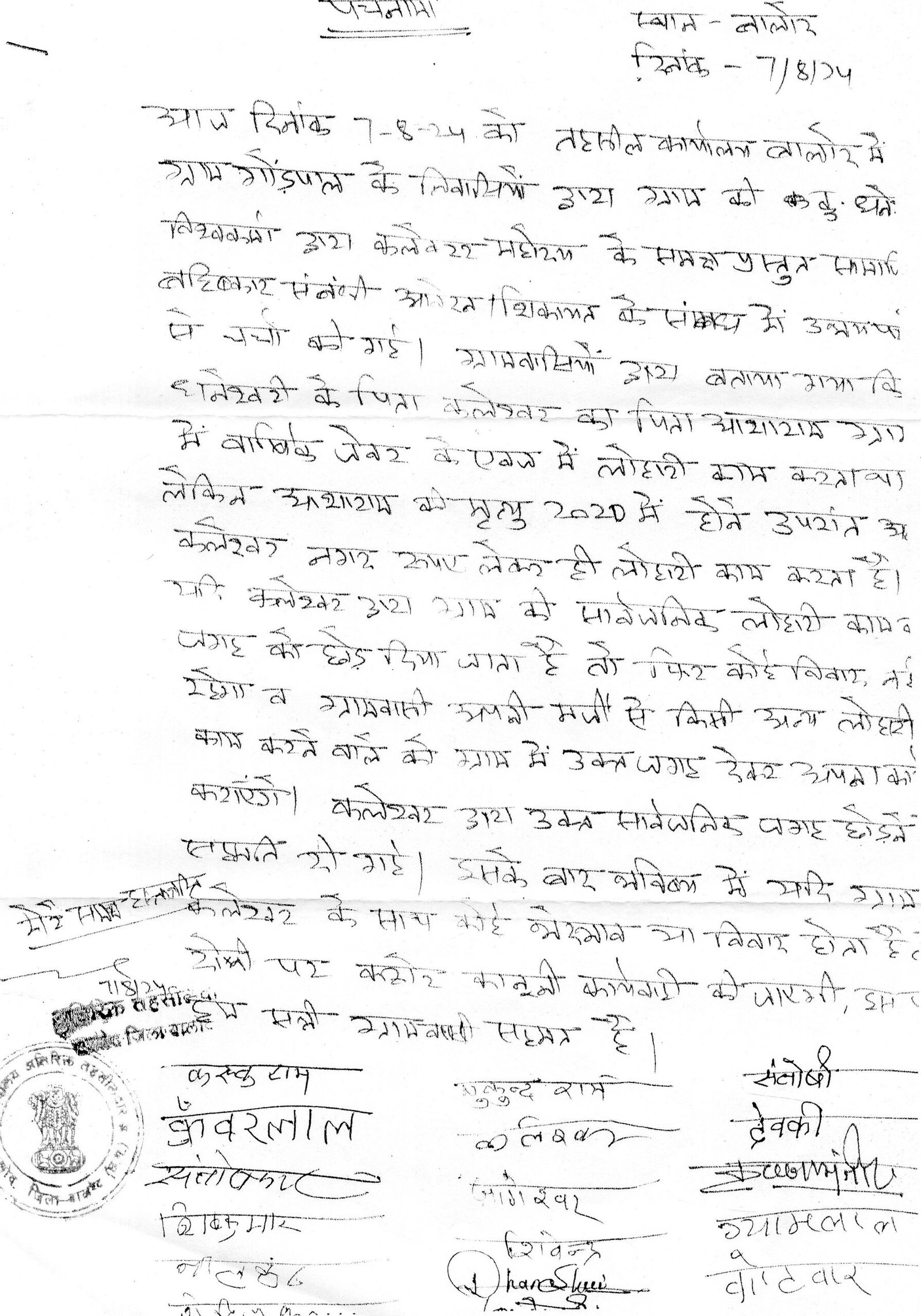 इसके बाउजूद भी ग्राम में आपसी सद्भावना एवं भाईचारा का वातावरण बना रहे इस आशय से अतिरिक्त तहसीलदार महोदय के द्वारा कलेश्वर विश्वकर्मा एवं उनके परिवार को उक्त लोहारी दुकान को खाली कर देने का सुझाव दिया गया तथा सौहाद्र पूर्ण तरीके से आपसी तालमेल बनाकर शांति पूर्वक रहने का समझाइए देते हुए आपसी सुलह करवाकर समझौता नामा तैयार करवा कर दोनो पक्षों का हस्ताक्षर लेकर मामले का पटाक्षेप किया था।
