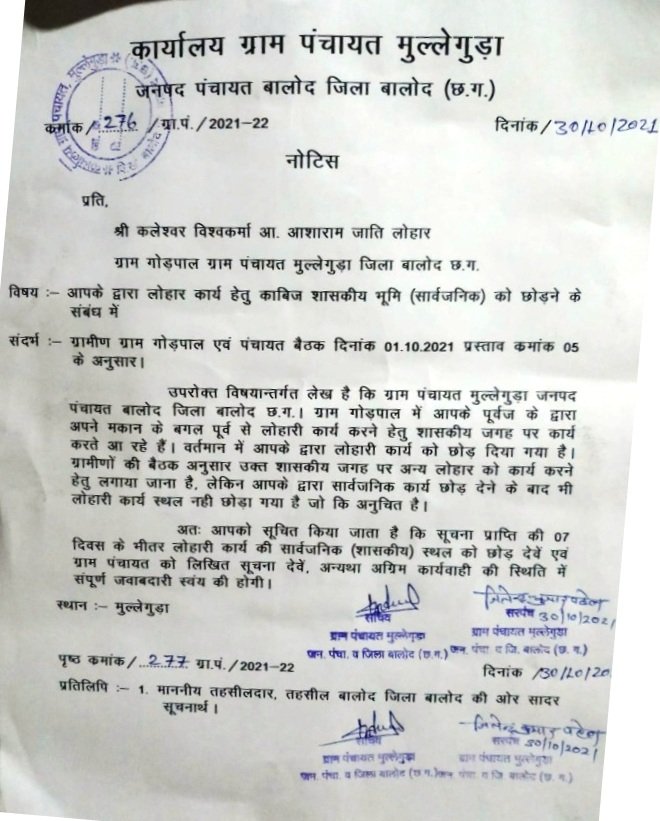 जहां पर अतिरिक्त तहसीलदार महोदय बालोद के निर्देशों का पालन करते हुए कलेश्वर विश्वकर्मा के द्वारा उक्त लोहारी दुकान को भी खाली कर दिया गया है। तथा लोहारी दुकान खाली कर दिए जाने की जानकारी अतिरिक्त तहसीलदार महोदय को फोन के माध्यम से दिया गया था। तत्पश्चात दिनांक 06 सितंबर 2024 को अतिरिक्त तहसीलदार महोदय के द्वारा किए गए समझौते की समीक्षा करने स्वयं ग्राम गोंड़पाल उपस्थित होकर ग्राम के नाई व दुकानदारों सहित ग्रामीणों को लोहार परिवार को दुकानों से समान लेने – देने तथा आपसी सहयोग करने की अपील किया था। लेकिन ग्राम के कुछ लोगों के द्वारा अब भी तहसीलदार महोदय के द्वारा किए गए अपील व दिए गए निर्देशों का उलंघन कर पीड़ित परिवार को प्रताड़ित करने में तुले हुए हैं, जिसके चलते अभी भी ग्राम गोंड़पाल में तनाव की स्थिति बनी हुई है। प्रशासन से अपेक्षा की जा रही है कि समय रहते मामले को गंभीरता पूर्वक संज्ञान में लेकर पीड़ित परिवार को तत्काल न्याय दिलाई जाए तथा मानव अधिकारों की रक्षा करें। अन्यथा मामले को लेकर कभी भी भयावह स्थिति निर्मित हो जाने से इंकार नहीं किया जा सकता। चूंकि प्रदेश में लगातार देखा जा रहा है कि प्रशासनिक अनदेखी के चलते कई गंभीर घटनाएं लगातार घटित हो रही है, जिसका पुनरावृत्ति ग्राम गोंडपाल में ना हो। अब देखना होगा कि मामले पर प्रकाश डालते हुए समाचार प्रकाशन के बाद पीड़ित परिवार को न्याय दिलाने के लिए प्रशासन क्या कुछ करती है।
