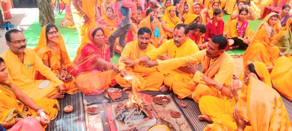ग्राम मोहारा में तीन कुण्डीय गायत्री महायज्ञ एवं शारदीय नवरात्रि अनुष्ठान की महा आरती संपन्न।